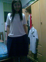 i was a yjc student a few minutes ytd!HAHA! wore karsandra's skirtt la!(= then i go dig out my sec sch skirt n i wear n compare. e length so different la!HAAHH!